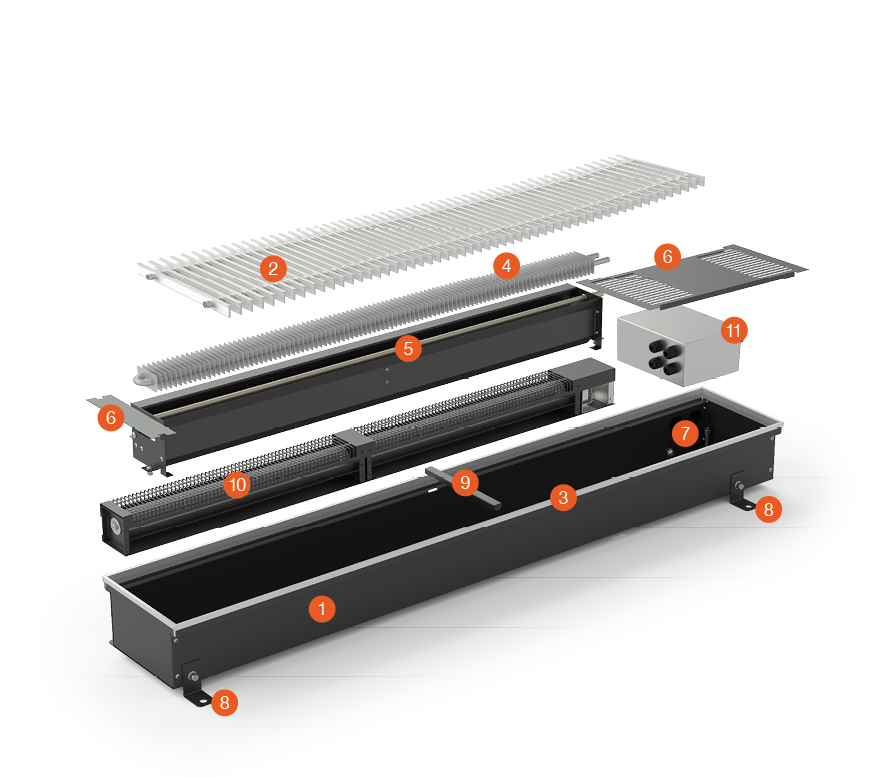 KORAFLEX Amper FVA (230 V AC) est un convecteur entièrement électrique avec une grille fixe en aluminium qui pour atteindre des puissances calorifiques élevées et chauffage rapide de la pièce contient – échangeur de chaleur électrique puissant et ventilateur tangentiel avec technologie EC. Une régulation fiable garantit un contrôle simple et sûr. Il dispose de son propre fonctionnement, indépendant du chauffage central et ne contient pas d’échangeur de chaleur pour le chauffage de l’eau chaude. Le convecteur au sol a des dimensions compactes et convient partout lorsque l’utilisation de la connexion au système de chauffage n’est pas possible ou pas prévue. KORAFLEX Amper FVA convient parfaitement à l’installation devant des grandes surfaces vitrées et il convient également aux maisons entièrement électriques ou modernes à faible consommation d’énergie. Grâce à la possibilité d’une installation supplémentaire, il est idéal pour les reconstructions lorsque l’utilisation de la connexion au système de chauffage n’est plus possible ou n’est pas prévue. Il s’agit d’un chauffage rapide, silencieux et économique, qui grâce à sa puissance calorifique élevée, peut être installé comme source de chaleur principale ou secondaire ou comme alternative au chauffage standard.